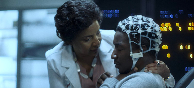 Desperate for a solution, Nolan turns to a kindly doctor, played by Phylicia Rashad, who insists her secret science project has the ability to restore Nolan's lost memories. Nolan is skeptical, but with nothing left to lose, he agrees to be strapped into the doc's machine and take a trip down memory lane. Here is where Osei-Kuffour Jr. gets to crank up the creepiness, presenting Nolan's memories as weird dream-like states where the man finds himself surrounded by faceless, voiceless people. To make matters worse, there's a twitchy, crawling, mysterious man lurking in these memories, his bones popping and clanking as he scutters towards Nolan like a deranged crab.