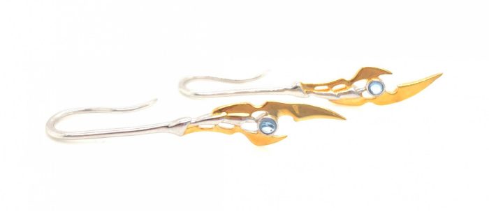 Here's a pair of sterling silver earrings designed like Loki's scepter, and maybe there are little Mind Stones inside.