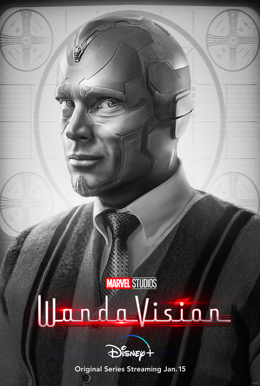 Here's a pair of character posters featuring Wanda Maximoff and Vision, stars of Marvel's WandaVision.