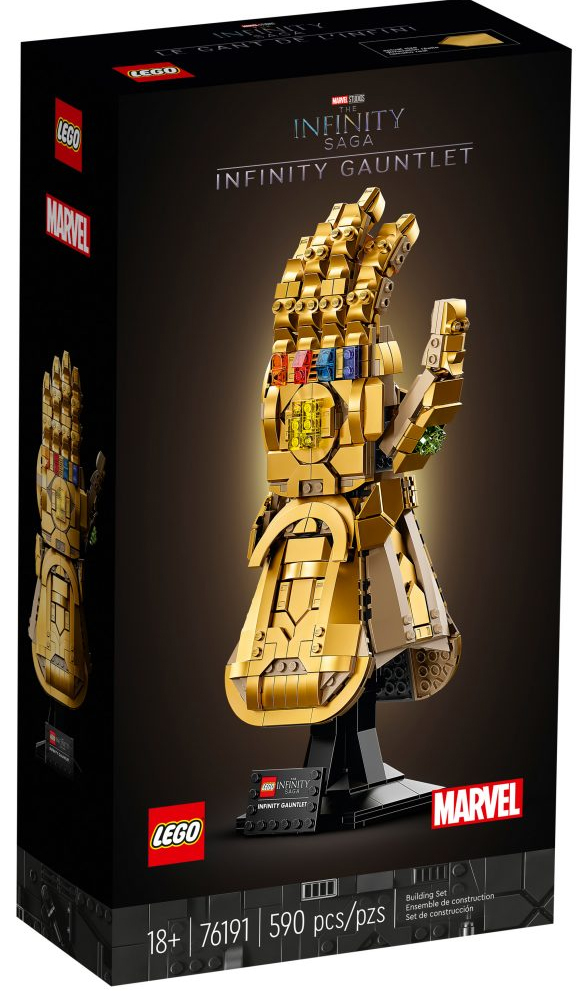 The LEGO Infinity Gauntlet is a 590-piece version of the powerful object that allows Thanos to wield the Infinity Stones and snap half of the universe out of existence. Complete with moveable fingers, the LEGO Infinity Gauntlet measure over one foot high and can sit on a sturdy base for display, or it can be posed in the fateful snap that completely changed the world. Check it out below.