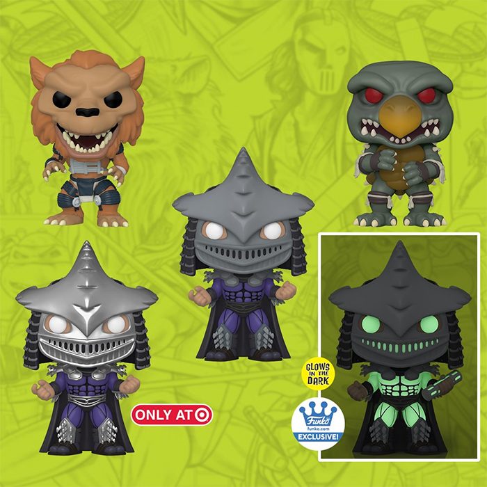 The villains of Teenage Mutant Ninja Turtles II are also getting the Funko POP treatment. The mutant snapping turtle and wolf known as Tokka and Rahzar are ready to take on our heroes, and they'll get some help from Super Shredder. There are actually a few different versions of Super Shredder, including a glow in the dark version that's a Funko Shop exclusive and a metallic variant available only at Target.