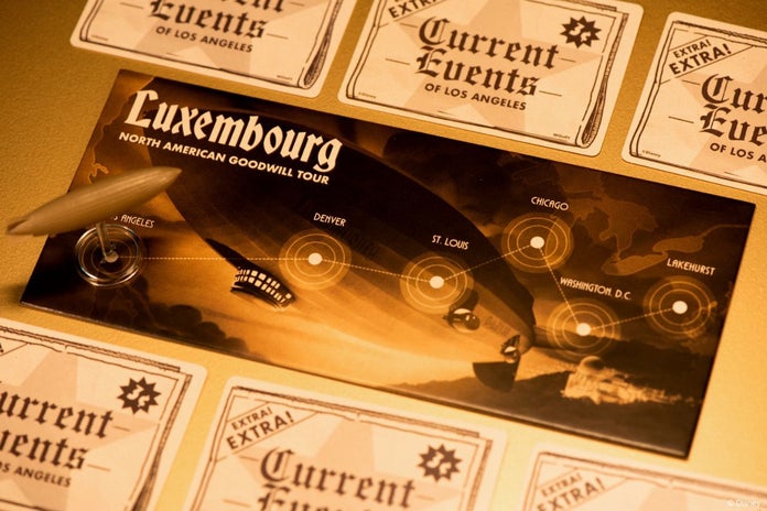 The Rocketeer: Fate of the Future is a competitive two-person board game that transports players back to the golden age of Hollywood. The object of the game is to keep the plans for the rocket hidden from your opponent. In order to do so, players will either take command of the Rocketeer and his allies to protect the plans and bring the revolutionary invention to the masses or side with Neville Sinclair and his henchmen, who aim to weaponize the plans for war. There is also a time component because the plans need to be hidden from the opposing side until the Luxembourg zeppelin makes its cross-country trip and arrives in Los Angeles.