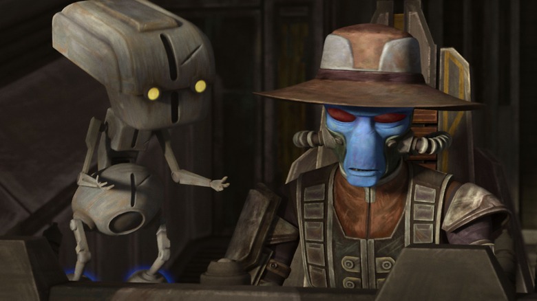 With her brothers in hot pursuit, Omega must figure out how to escape from the clutches of bounty hunter Cad Bane, who is en route to an abandoned Kamino facility to trade the girl for credits. This opening gives Omega too easy of a way out: playing to the needs of Cad's half-competent sidekick robot, Todo, so that he frees her.