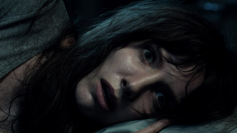 Sleeping on the couch that night, a dark and spooky entity enters their home and dispatches this abusive sack of garbage. It's hard to feel sorry for the guy, but he is murdered super hard. This is not standard murder. This is spine-twisting, no-doubt-about-it murder. Madison also has a run-in with this entity and lands herself in the hospital. Tragically, her unborn baby does not survive the encounter. This is particularly heartbreaking as she's had several miscarriages recently ... something her sister Sydney (Maddie Hasson) was not aware of.