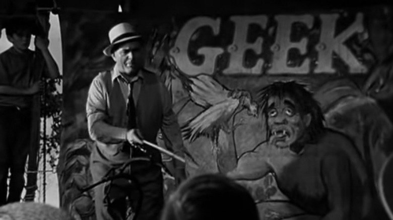 Willem Dafoe plays the carnival's morally dubious owner, and his event frequently draws big crowds for its "geek show." Geeks were sideshow attractions at traveling carnivals, and they consisted of a guy biting the heads off of live animals (often chickens). Many workers refused to stay with a carnival that utilized a geek show; they were looked down upon because of their disgusting nature and for the fact that the geeks themselves were often alcoholics or drug addicts who had found themselves working as geeks just to get their next fix. In the original film, Stan is perversely fascinated by the geek, at one point explaining to another character, "I can't understand how anybody could get so low."