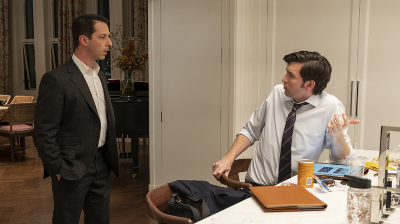 Tom's (Matthew Macfadyen) fate may be tied to Shiv, but right now his closest mirror is Greg (Nicholas Braun). As the Roy battle rages on, these two outsiders teeter in the balance, trapped in a purgatory state that seems primed for disaster.