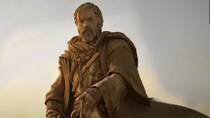 There's our hero, Jedi Master Obi-Wan Kenobi, and he's never been dustier. He looks like a Jedi cowboy, with a tattered cloak waving in the wind as he rides an eopie through the desert. Clearly this is Tatooine, where Obi-Wan has tasked himself with keeping an eye on a young Luke Skywalker (rumored to make an appearance in the show), who is in the hands of his Uncle Owen and Aunt Beru. The gear that the creature is saddled with is interested, because some of it appears to be technology of some kind, perhaps cooling or hydrating the eopie in the arid climate.