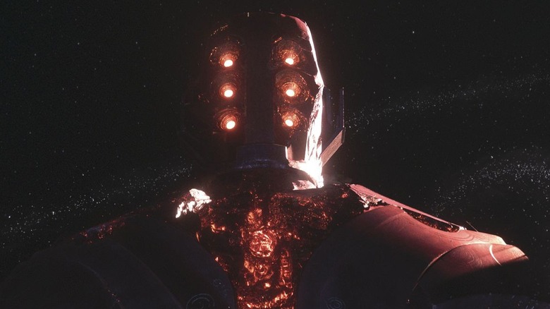Arishem is dull by design. That's a bizarre sentence to write about a galaxy-sized, crimson Celestial with six burning furnaces for eyes. But one of the core themes of "Eternals" is the potential pitfalls of unwavering worship, and Arishem and his interests are mere MacGuffins. We are made to understand that Arishem is awe-worthy, a phantasmagorical space god whose purpose is nothing less than preserving sentient life in the universe. What Arishem winds up being — with a purposefully less than satisfactory explanation– is a pro-life judge who sends the Eternals to Earth as freshly-brainwashed doulas.