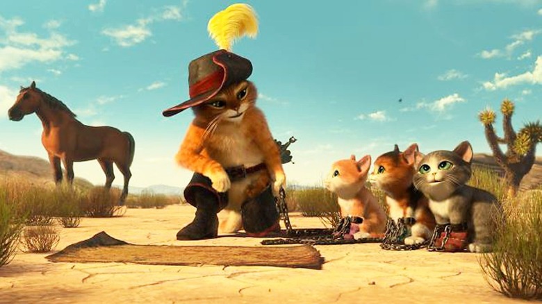 It has been quite some time since "Puss In Boots" graced the screen in 2011, giving the fan-favorite character from the "Shrek" franchise the chance to shine in the spotlight solo style. We first met the feisty cat, voiced by Antonio Banderas, in the all-time great sequel "Shrek 2," and he's a big part of what helped make that movie arguably the greatest entry in the franchise overall. Netflix has tried to help fill the void for younger audiences with "The Adventures of Puss In Boots" animated series, but it's not quite on the same level for most viewers. The good news is, the cat is coming back with "Puss In Boots: The Last Wish" in 2022, and we're here to give you all of the need-to-know info regarding the character's latest cinematic adventure.