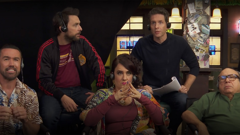 What's up, jabronis? Season 15 of "It's Always Sunny in Philadelphia" is finally here, making it the longest-running live-action comedy series in television history. The series has always been a bit self-referential, but the upcoming season looks like it will be the most introspective yet. While "the gang," comprised of Mac (Rob McElhenney), Dennis (Glenn Howerton), Charlie (Charlie Day), Dee (Kaitlin Olson), and Frank (Danny DeVito) never learn anything and the only kind of self-growth they've ever had was Mac's accumulation of mass in season 7, the creators of the show (McElhenney, Howerton, and Day) have tried to improve their comedy and the series as it progresses. The first two episodes of the 15th season are full of reflection: about the gang's past behavior, the ridiculous state of our nation, and the series' own problematic content over the years.