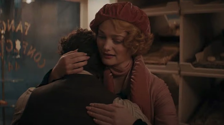 Then we see Jacob at some sort of banquet and he's in the middle of a battle with his wand raised. I guess he knows how to use it? I'm not clear on the Muggles-using-wands thing. Something very bad is happening here because we're also getting a shot of Queenie with blond hair (As a blond, I really do wish blond ladies would stop doing stupid s***. It's making me want to dye my hair purple)