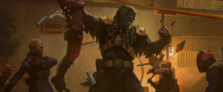 Back in the present, Boba makes his rounds and arrives at Garsa Fwip's (Jennifer Beals) Sanctuary, where Black Krrsantan is terrorizing some patrons. This time, Boba actively recruits the Wookiee, giving him yet another formidable ally in the war to come.