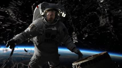 Several years later, Jo has been promoted to a top position at NASA while Brian's life is a mess. He's divorced from his wife (Carolina Bartczak) and estranged from his trouble-making teen son (Charlie Plummer), and he ekes out a living giving talks to bored schoolchildren. But something big is about to happen to give Brian's life purpose again. Can you guess what it is? I'll give you a hint: it involves a certain Moon ... falling. Yes, the Moon has left its orbit and is headed right for us — although no one seems to notice at first. No one, that is, except comic-relief conspiracy theorist K. C. Houseman (John Bradley), the type of guy who dreams of being a famous astronaut and has a kitten named Fuzz Aldrin to hammer that point home.