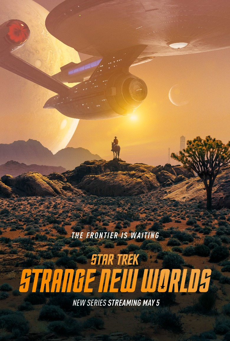 But the biggest ace in the hole this series boasts remains the Enterprise herself, boasting a classic design that follows the "Even a child should be able to draw its outline" rule of visuals. The newest poster for "Strange New Worlds" (revealed on Twitter) wields this iconography to evocative effect, allowing the gorgeous starship to dominate the background of the poster in front of a very Western-tinged setting. Take a gander at it yourself!