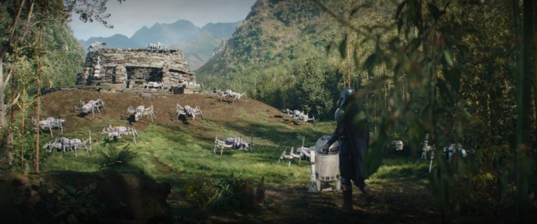 The reappearance of a de-aged Luke Skywalker (voiced by Mark Hamill, but physically represented by "Jedi performance artist" Graham Hamilton and some impressive visual effects), the live-action debut of a villainous animated character, and a deeper looker into the backstory of Grogu himself were only a few of the most talked-about aspects of the sixth episode, but one particular moment early on established just how interconnected these Disney+ shows intend to remain with the recent movies. The Mandalorian himself, Din Djarin (Pedro Pascal), kicks off the action this week by landing on the planet where Luke is currently hard at work training Grogu in the Jedi ways. But before ever crossing paths with the two powerful Force-users again, none other than R2-D2 brings Mando to a building currently in the process of construction. Mando can't make heads or tails of what it's meant to be, but the eventual appearance of Ahsoka Tano (Rosario Dawson) promptly clears things up.