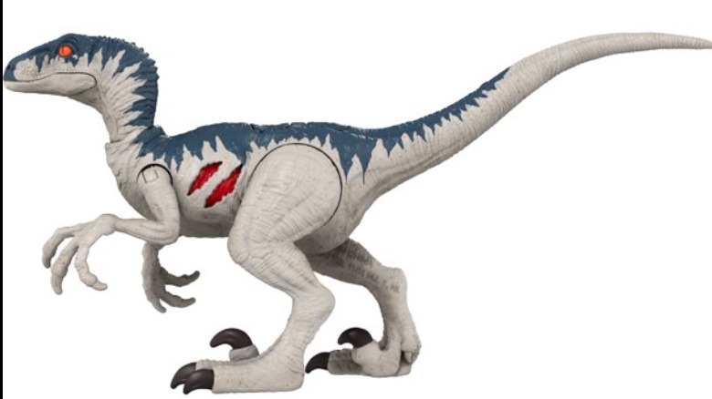 First up is the Jurassic World Dominion Extreme Damage Feature Velociraptor, which retails for $10.28. Yes, unlike a lot of the toys we post about, this one isn't going to force you to mortgage your house and live in a fort built of toys. The Velociraptor does seem to be available in some places, but it will depend on your zip code. It's not available at my local quite yet. These dinos have two-sided damage which you can reveal by pushing a button. They're three inches tall and 6.7 inches wide.