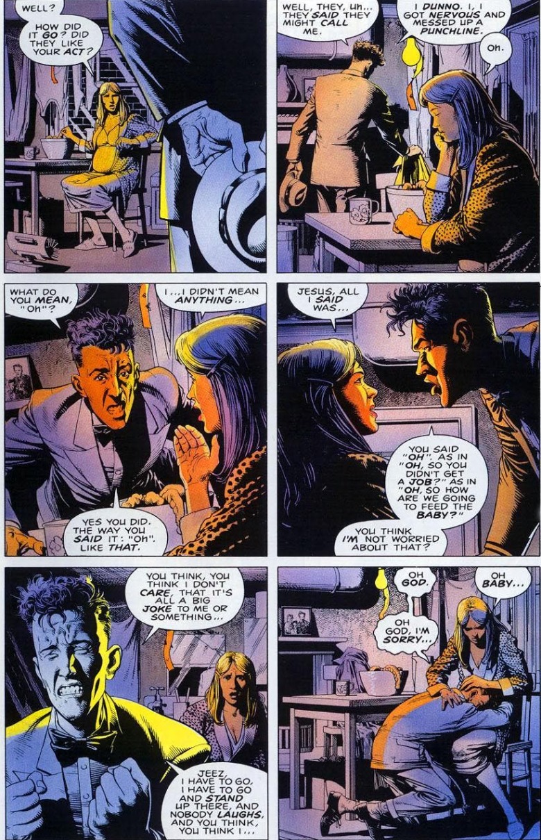 "The Killing Joke" has come under increased scrutiny in recent years for its exploitative handling of Barbara Gordon; writer Alan Moore even disowned the story, which is not surprising given his general disillusionment with superheroes. What is unimpeachable about the comic is Brian Bolland's penciling — in particular, his design for the Joker. The Clown Prince of Crime was always lankier than the muscle-bound Caped Crusader, but in that comic, Bolland drew the Joker as pencil-thin with particular emphasis on his protruding neck and pointed jaw. Artists ranging from Bob Kane to Neal Adams had drawn the Joker with his hair slicked back, but in "The Killing Joke," Bolland gave him a messier but still upright haircut, which you can spot if you look closely enough in "The Bamtan."