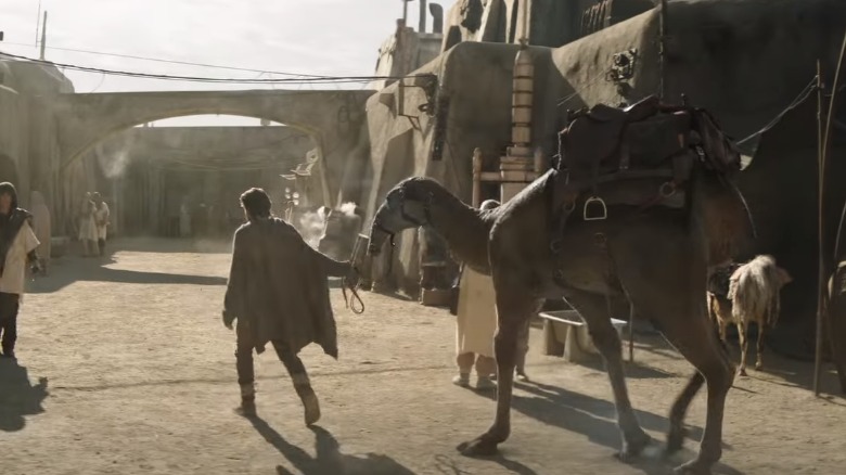 This next shot is pretty surprising as we see someone literally being hung in the streets. That's not to say "Star Wars" isn't violent, but this is a pretty grim bit of direct violence that isn't often shown in the franchise. It's typically a lot of people dying in explosions or at the hands of a weapon that doesn't leave a lot of blood. This is a pretty blatant, cruel thing to see ... but Tatooine can be a blatant, cruel place.