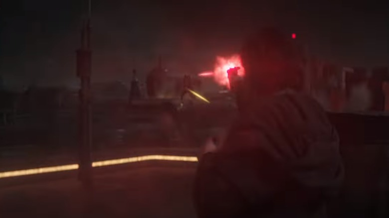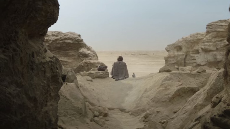 A large section of the "Star Wars" fanbase is about to be introduced to a new villain in the form of the Inquisitors. These foes had a big part to play in the animated "Star Wars Rebels," as well as the "Darth Vader" comic and the "Jedi Fallen Order" video game, but have yet to appear in live-action. That all changes now, as we see one of their ships arriving at an ominous-looking base. Said base, it's worth noting, is surrounded by water and almost certainly is not located anywhere near Tatooine. Additionally, "Duel of the Fates" kicks in here, a nod to "The Phantom Menace" and one of the greatest bits of "Star Wars" music ever composed, which is a nice touch.