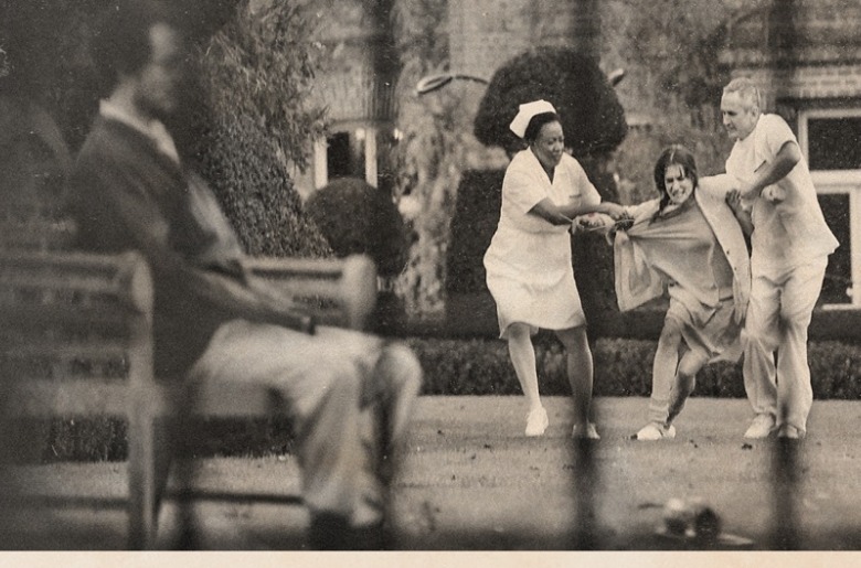 You can see Professor Strange (who I won't call Doctor Strange here, because no one needs that confusion) in the image above. While he's had slightly different looks in earlier eras (noticeably regarding animated adaptations that give him varying degrees of hair), the bald head is classic Strange, alongside a gloriously maintained chin strap beard and coke bottle glasses. Now look at the gentleman in front of the orderlies and Martha Wayne in the Riddler's Arkham photos: