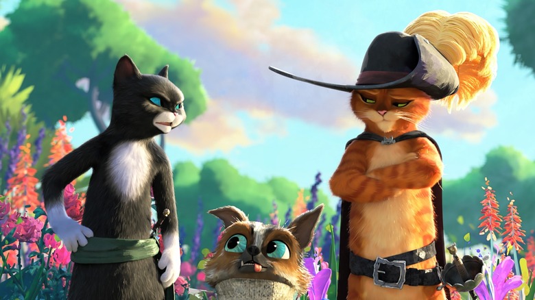 Though Puss In Boots is in search of new lives, his old ones have been pretty eventful. After being introduced in 2004's "Shrek 2," he went on to steal more scenes in two other Shrek sequels, his own solo film, multiple shorts, and six seasons of a Netflix series. Now, Dreamworks hopes to replicate that success with this new movie from director Joel Crawford and producer Mark Swift, the creative team that previously worked on "The Croods: A New Age" for the studio. With an extremely talented roster of voices on board for this adventure, the sky is the limit for Shrek, Fiona, and Donkey's swashbuckling swordsman and his steadfast star search.