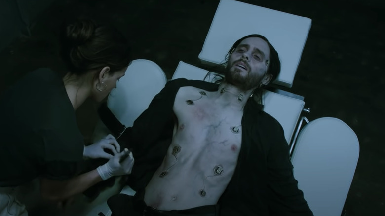 What's onscreen in "Morbius" is a superhero film based on a Marvel Comics character about a doctor who turns himself into a living vampire. Origin-wise, Dr. Michael Morbius is essentially Dr. Curt Connors, aka the Lizard — the villain played by Rhys Ifans in "The Amazing Spider-Man" and "Spider-Man: No Way Home" — but with bats substituted for lizards. Instead of trying to grow his arm back, he's trying to cure his blood disease.
