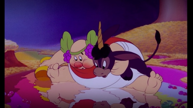 Then we have "Pomp and Circumstance, Marches 1, 2, 3, and 4" by Edward Elgar, with a segment that is based on Noah's Ark. Donald Duck is married to Daisy Duck and working as Noah's assistant, trying to get the pairs of animals on the ship before the rain takes over. He does have a moment when he's lying in a hammock "naked" and seems upset that Noah saw him. His shirt only covers down to his waist. What is he covering up, I ask you? You know what? Don't answer that.