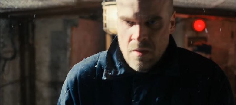 The trailer opens with an ominous voiceover, with the words, "You've broken ... everything. Your suffering is almost over." Despite being in the shadows about who this voice actually belongs to, the recipient is most likely Eleven, as it is her powers to open and close the portal to the Upside Down that were instrumental in kickstarting the experiments that took place in the Hawkins National Laboratory. The shot above is the aftermath of the demolition of the Russian base beneath Starcourt Mall, a feat accomplished by Joyce Byers (Winona Ryder) and Jim Hopper (David Harbor), who were able to close the portal on time, although Hopper was caught in an energy field and presumably died in the process.