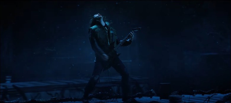 Yes, that's Billy Hargrove, in the flesh, playing a sick riff on his guitar, as the Upside Down glistens in its telltale shade of blue around him. While a shot preceding this shows a shirtless (?) Steve (Joe Keery) battling a monster in the same dimension, these shots might be spliced up from completely different scenes, as a lot of action seems to be going down in the alternative, ominous dimension. The repercussions of Billy still being alive are huge, as this could mean a reunion with Max (but not in the way we think) and a possible return of the character, although his motivations remain shrouded in mystery for now.
