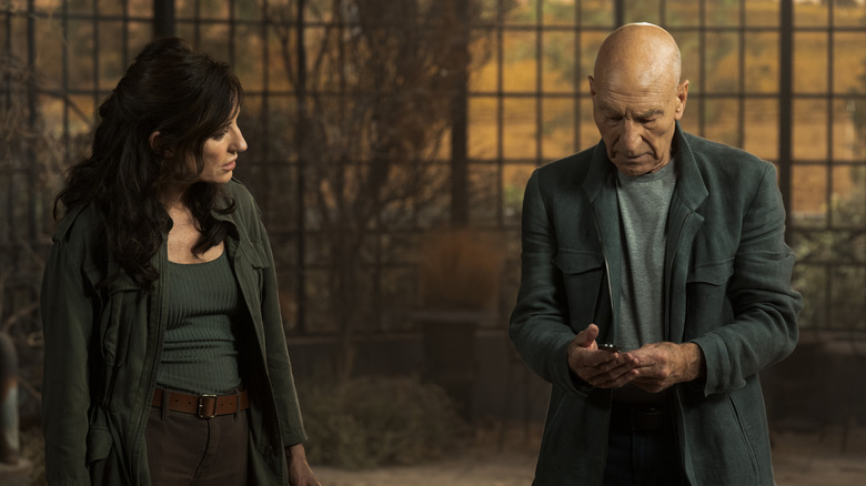 A running motif throughout this season of "Picard" has been the fate of the title character's mother, seen periodically in flashbacks, and the center of the plot in the seventh episode "Monsters." throughout the series, Picard has experienced flashbacks to his childhood wherein he recalled a dark game of Hide and Seek, wherein his mother was locked in a basement room by his father. In "Monsters," it was made explicit that Picard's mother Yvette (Madeline Wise) was bipolar and that his father Maurice (James Callis) had to sternly aid her mental illness. Picard's dark childhood memories are something Trekkies previously did not know about the character, I suppose, but the introduction of all this material has little to do with the plot or the (hardly extant) themes of the season. Picard had mixed feelings about his stern father and would — as learned in this episode — have to reveal that his mother died by suicide, found hanging in the very greenhouse where she and young Jean-Luc used to gaze up at the stars.