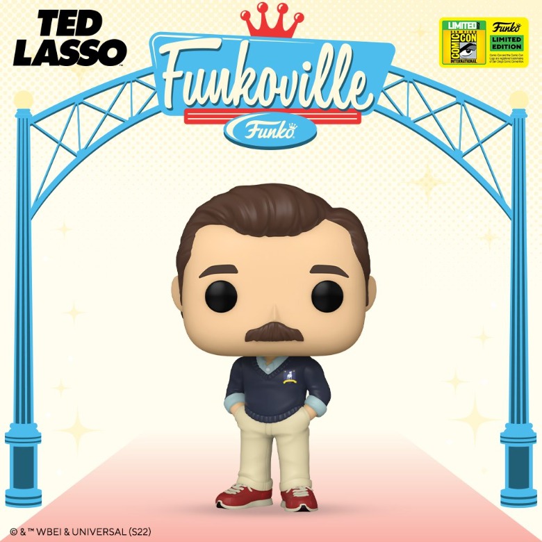 This year's SDCC will be the first place that you can acquire a Funko POP from the massively popular Apple TV+ show "Ted Lasso." Naturally, the first entry into the line is Jason Sudeikis' titular beloved coach. Based on the limited nature of these exclusives and the seemingly endless number of AFC Richmond fans in the Funko community, it could prove extremely difficult to score Ted Lasso for your team, but hopefully there will be a whole line on the way at a later date.