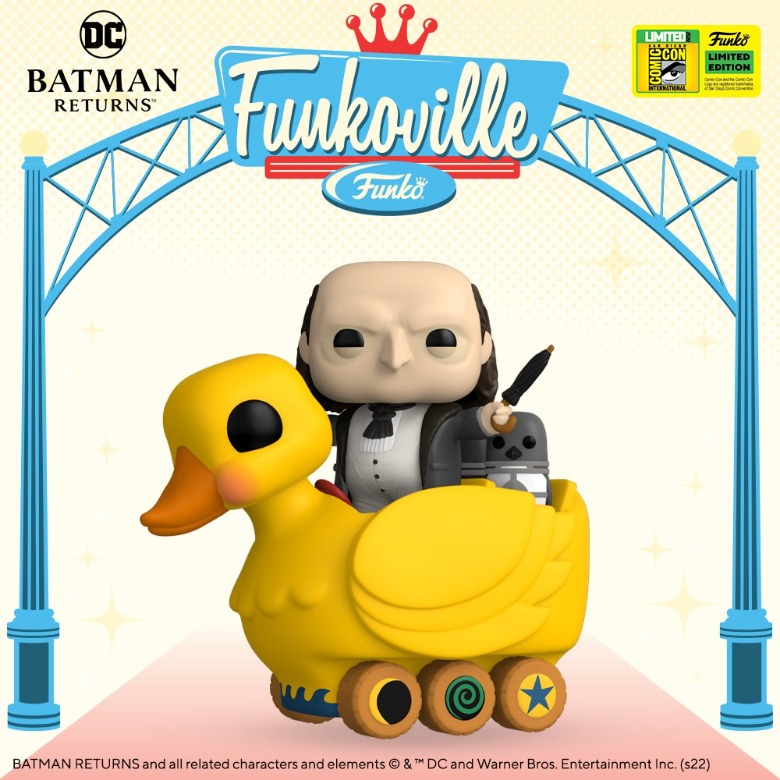 The last DC exclusive brings to life not only one of the best moments from any of DC's movies, but one of the best moments of cinema. In Tim Burton's "Batman Returns" from 1992, Danny DeVito plays Oswald Cobblepot, aka the notorious Penguin. And not only does he employ an army of penguins to do his bidding, but he also rides around Gotham City in a giant, yellow, all-terrain duck vehicle. I can't emphasize how great this ducky car is, and clearly Funko understands that as well because now we have the Penguin in the duck with a penguin minion heading straight for SDCC. If that little penguin also has a rocket launcher on its back, then this might be the best POP ever made.