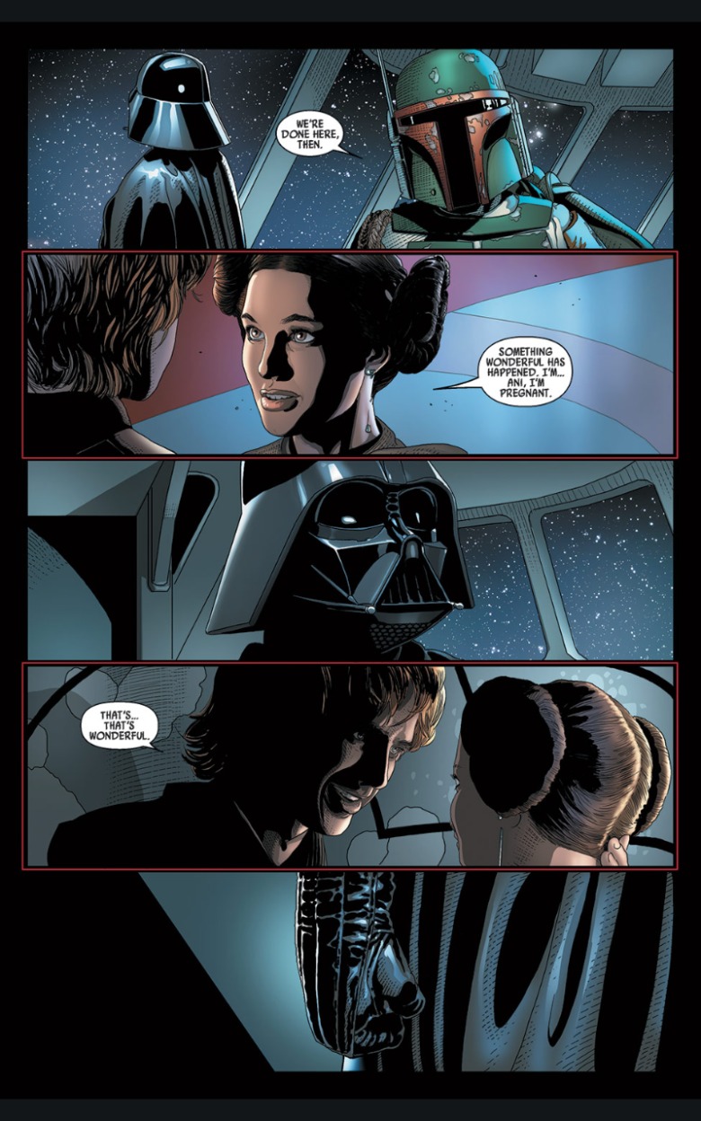 But during the events of 2015's "Star Wars" comic from Marvel, as well as the "Darth Vader" series being published at the time, Palpatine's right-hand man does learn that Luke Skywalker is in fact, his son. Cue the dramatic music. These were some of the early books published by Marvel Comics as part of the new, reset canon under Lucasfilm and they opted to tell this hugely important tale across two titles. Namely, in issues #4 and #5 of "Star Wars" and issue #6 of "Darth Vader."