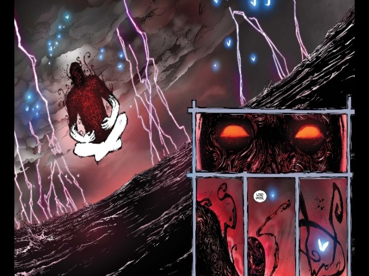At one point, we get a page that occurs as Darth Vader is lost in thought, seemingly meditating and connecting to the Force in some way during a quiet moment. The above page shows us a version of Vader's likeness within the Force, with red, a color commonly associated with the Sith, running through his body, save for his arms and legs, which are white. Why is that? Well, Vader lost his extremities on Mustafar and they are now mechanical. And therein lies the answer.
