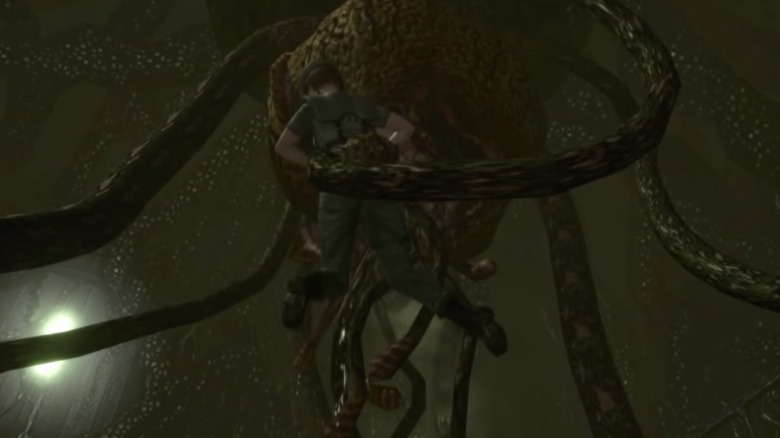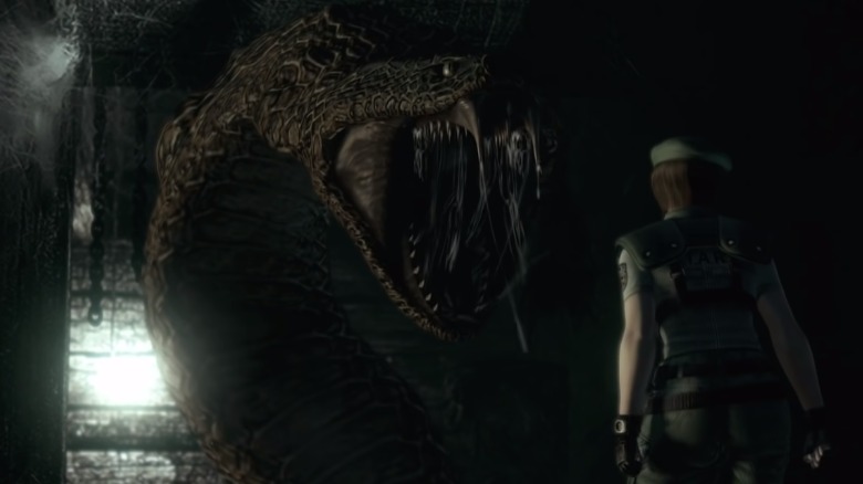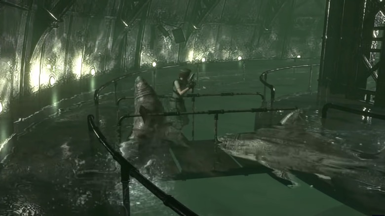 One of the biggest things that Romero did to make it feel closer to the original game is by including lots of familiar beasts. For one, we meet the zombie dogs early on and their introduction feels accurate — tense, scary, and surprising. But that's far from the only beast we get as the filmmaker included many of the main, big T-virus-created monsters from the original "Resident Evil" are present. Perhaps the most fun of these reveals is the tank full of zombie sharks that Chris falls into about midway through the film, much like the zombie shark tank included in the original game.