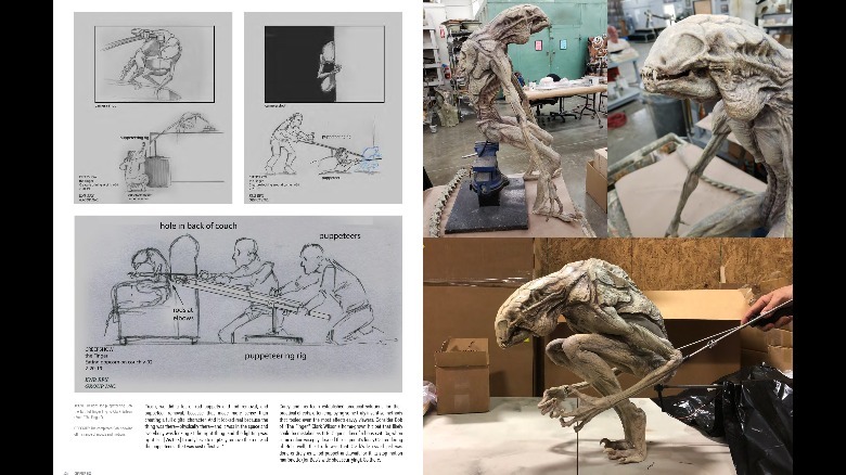 Another page of the book shows the hard work that went into creating Bob, the alien pet D.J. Qualls' character Clark discovers in the other episode two segment, a Nicotero-directed chapter called "The Finger." Multi-angle photos of Bob reveal the creature's fantastic design, while the opposite page details the complex puppeteering rig that brought Bob to life. Prince's commentary reveals that no part of Bob was CGI, but rather, he was a combination of a stop-motion marionette and a puppet on a rod.
