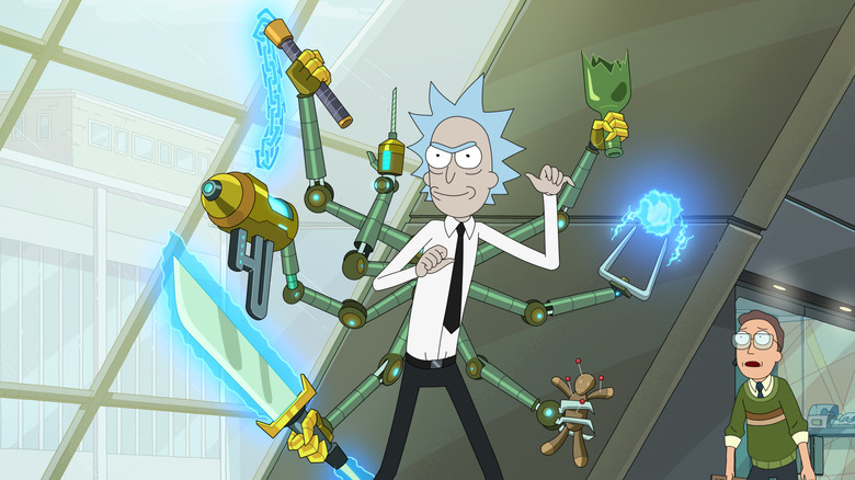 "Rick and Morty" is coming up on its sixth season, which begins September 4, 2022 on Adult Swim. But the show actually started 10 years ago, and those early years were rather difficult for co-creators Dan Harmon and Justin Roiland. Thankfully, a guaranteed order of 70 episodes back in 2018 (with 40 left to complete after the sixth season concludes later this year) made it much easier for the series to maintain a proper schedule. In fact, things are going so smoothly that both Roiland and Harmon have been able to step away from the show somewhat. Don't worry, they're still very much involved with the creative direction of the show, both serving as executive producers, not to mention Roiland's essential involvement as the voices of the two titular leads. But the show has another executive producer in the form of Scott Marder, whose previous credits include "It's Always Sunny in Philadelphia" and "BoJack Horseman," and "Rick and Morty" hasn't missed a beat.