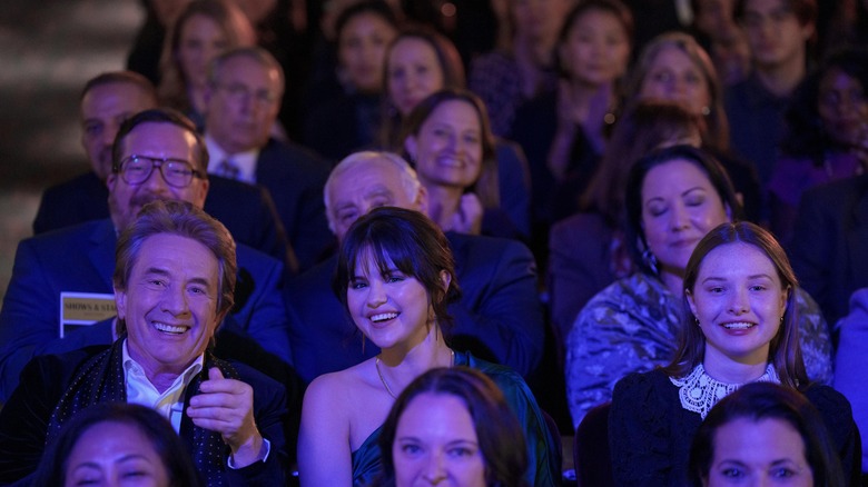 The first season of "Only Murders" asked the question "Who is Tim Kono?" (That, of course, was the man who was killed in the pilot, setting off the adventures of Charles and his fellow podcasters.) The second-season finale starts by answering a question that some of us may have asked after last week's surprising cliffhanger: who is, or was, Becky Butler? Becky Butler, we all thought, was the dead woman whose disappearance served as the linchpin for the podcast that brought Charles together with Oliver (Martin Short) and Mabel (Selena Gomez), as dedicated true-crime fans thrown into a world of true crime in their apartment building. But now ... well, Becky Butler is alive and well, and now known as Poppy White, so it is perhaps fitting that the episode gives the setting-stage narration to the real Becky Butler, who's reminiscent of Poppy while having a different hairstyle, no glasses, and a pronounced Southern accent. "Before I became one of the most talked-about people in the country, I had a pretty ordinary life ... if you assume most ordinary people are miserable," Becky intones, looking pretty miserable in a fairly squalid living situation in Oklahoma, living with a nasty father and working as an assistant to the mayor of Chickasha. Said mayor seems like a creep, especially after she politely turns down his offer of a late-night drink in the office and he jovially says, "You're not always going to be able to say no to me!" Yuck.