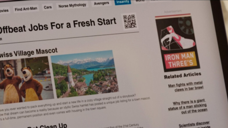 In the episode, Jen is unveiled as the She-Hulk — she'll come up with a better name, though, don't worry. The incident causes Jen to be fired, and to essentially get blacklisted from every law firm in town. Some don't want her cases to be compromised because juries are fans of her, others simply don't want extra attention, but the damage is the same. Unable to find a job, Jen resorts to looking online for other professions, like working as a Swiss village mascot.