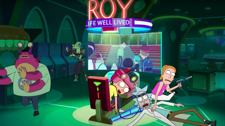 Meanwhile, the second episode of the sixth season of "Rick and Morty" gets back to basics. Not unlike the season premiere, the episode entitled "Rick: A Morty Well-Lived" reaches back into the second season of the series, specifically the episode "Mortynight Run." In that episode, Rick and Morty pay a visit to a video arcade called Blips and Chitz, where there's an incredibly mundane video game called "Roy: A Life Well-Lived." Players control an everyday man named Roy Parsons, and the object of the game is to guide him through life, with the final score being however many years Roy lived.