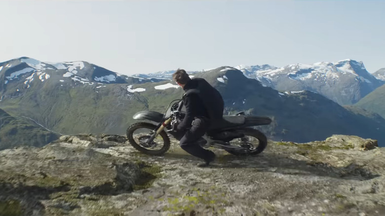 In the upcoming instalment, "Mission: Impossible — Dead Reckoning Part I," there is one moment featured in the trailer that even Cruise himself is dubbing the "most dangerous" stunt of his career: riding a motorcycle off a cliff and deploying a parachute just about 100 feet away from the ground. Cruise explained, "I had about six seconds once I departed the ramp to pull the chute and I don't want to get tangled in the bike. If I do, that's not going to end well."
