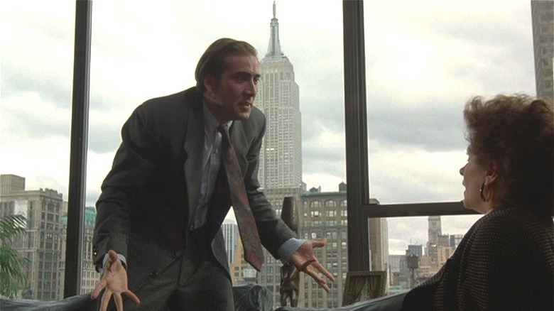 Cage's drawling, whiny way of speaking in "Vampire's Kiss" adds greatly to his character in the 1988 black comedy horror film. A good example would be this scene, in which Loew lectures his therapist about the simplicity of filing documents in alphabetical order. The hilarity of the scene aside, it establishes the outlandish nature of Cage's character, highlighting his narcissistic tendencies and penchant for theatrics. As Leow becomes more isolated and irritated as the film progresses, it makes sense for him to lean heavily into his delusions that he is a vampire on the prowl. Per Stanley's statement above, Cage parodied his father's mannerisms in "Vampire's Kiss" — something he turned to once again while portraying a family man on the edge of sanity.