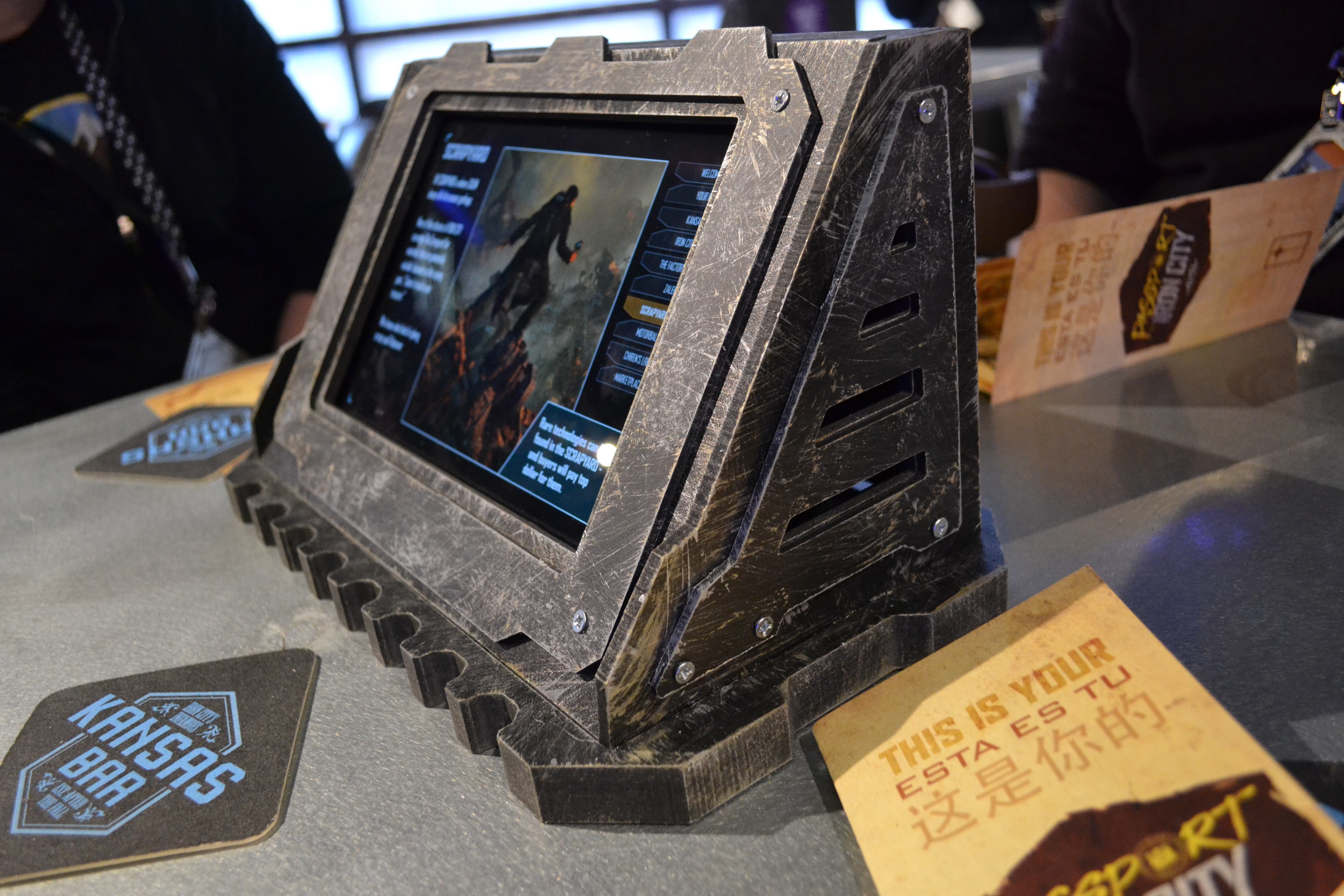 This is one of the various activities at New York City's Alita: Battle Angel – Passport to Iron City, an immersive event that promises to drop you into the world of James Cameron and Robert Rodriguez's sci-fi epic, Alita: Battle Angel. Created by 20th Century Fox in collaboration with iam8bit and the Seeley Group, Passport to Iron City is part Escape Room, part theme park, and all fun — regardless of whether or not you're planning to see the movie.