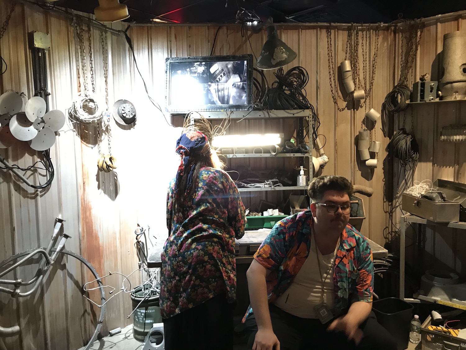 A man sporting a Hawaiian shirt and a strong Cockney accent berates me for me slow work in the scrapyard, which isn't really a scrapyard but a small booth filled with piles of metal scrap and hidden clues. Find the most valuable piece of scrap and win the most credits is the game, and it's easy to get caught up in it. I find a weird, rusty contraption with a plug. "Read the small print on the outlets," the ethereal long-haired woman in a silk kimono robe gently nudges to me. I plug it in and a series of numbers appear, which turn out to be the code for a safe harboring the most precious piece of scrap at all.