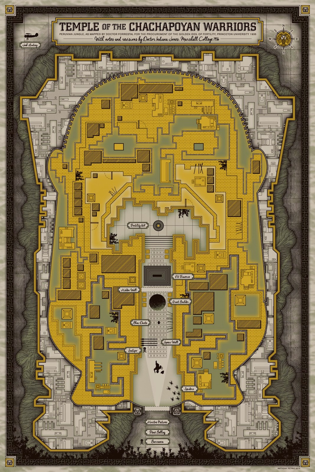 January 9 at Gallery 1988 West in Los Angeles, Petrie is presenting a whole new exhibit of new work in that mode. It's called Charts, and he's doing maps for some of the movies mentioned above and many more. Below, check out just a few of the Anthony Petrie Gallery 1988 Charts including an exclusive from a galaxy far, far away.