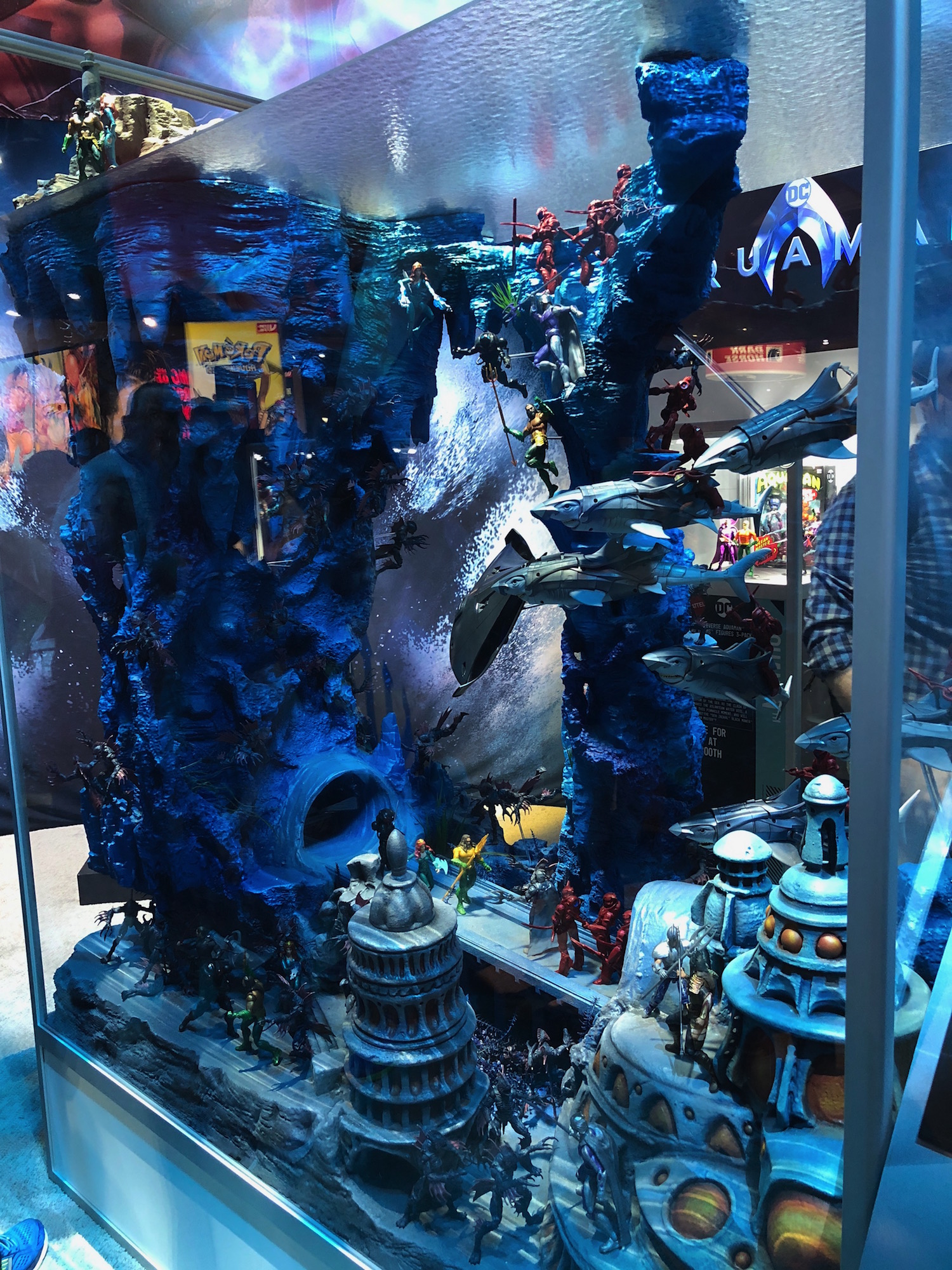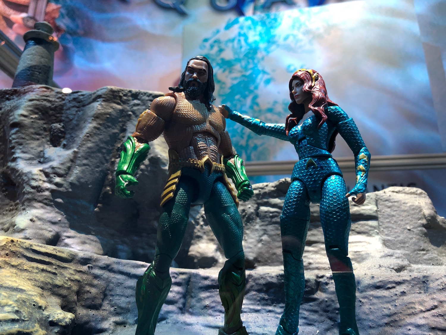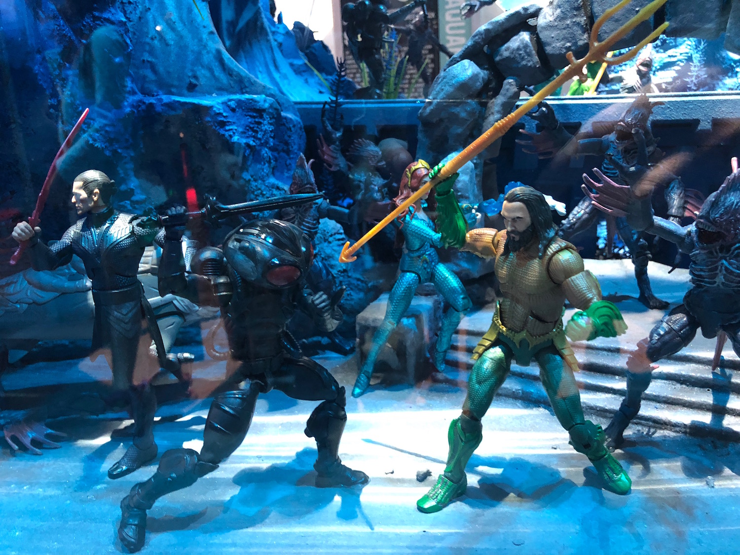 Multiple Aquaman booths set up around the Comic-Con show floor previewed the toy lines tied to the DC comic book hero's solo movie, and in doing so, gave us some tantalizing hints at the film itself.