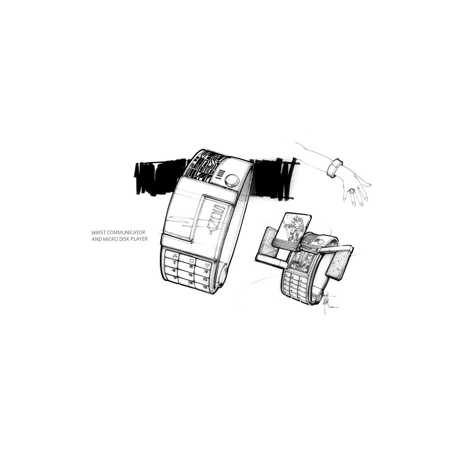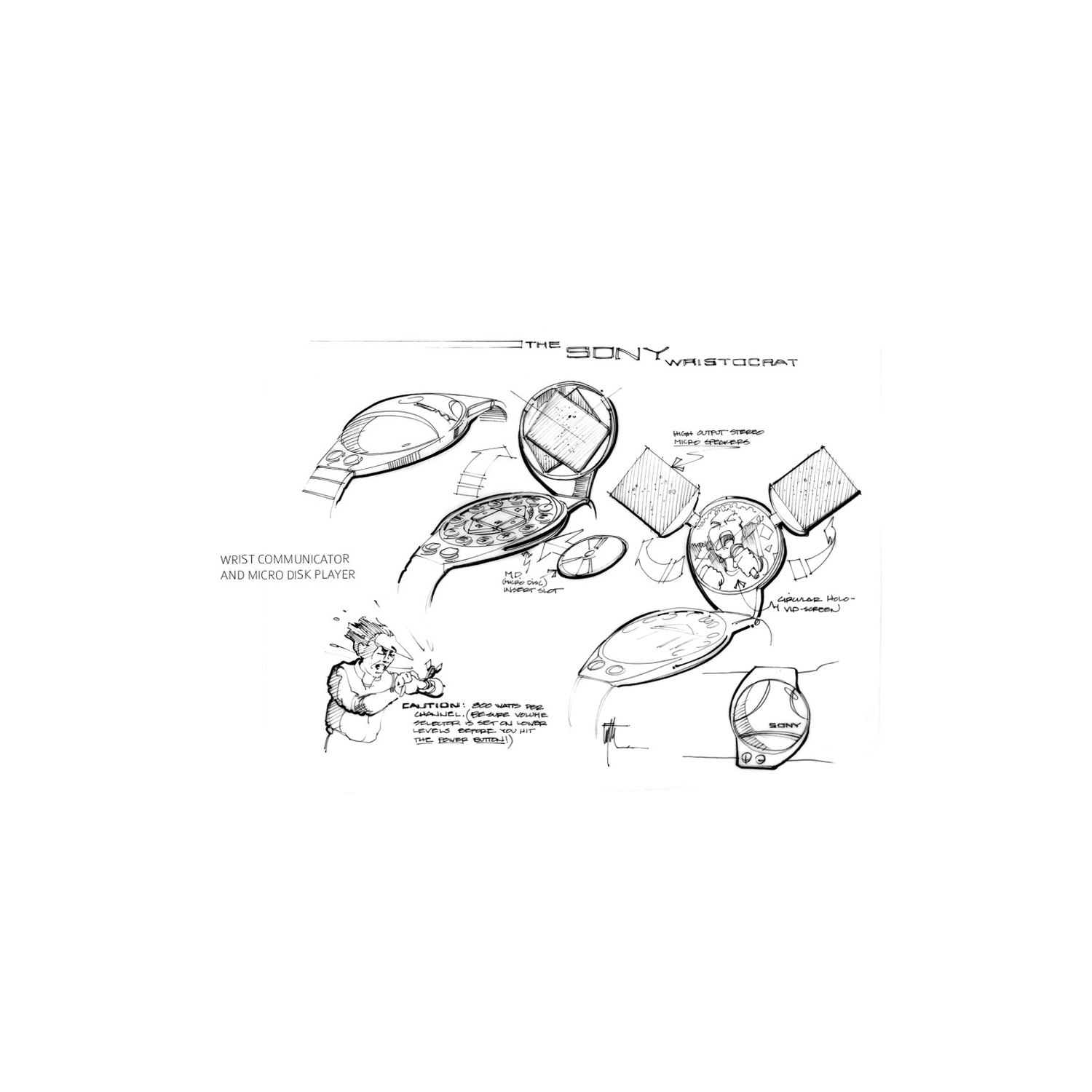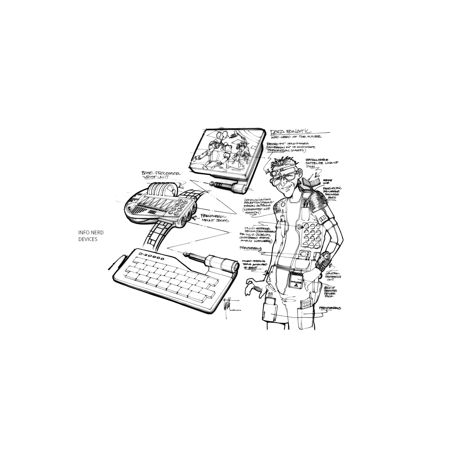 There are some super cool ideas in there. I love the idea of the watch that keeps folding out (though we arguably have sometime kind of similar with the iWatch). The Robonanny is funny and the other robots to help around the house, all very cool. Eyth also did some more detail drawings of the contraption old George McFly uses on his back.