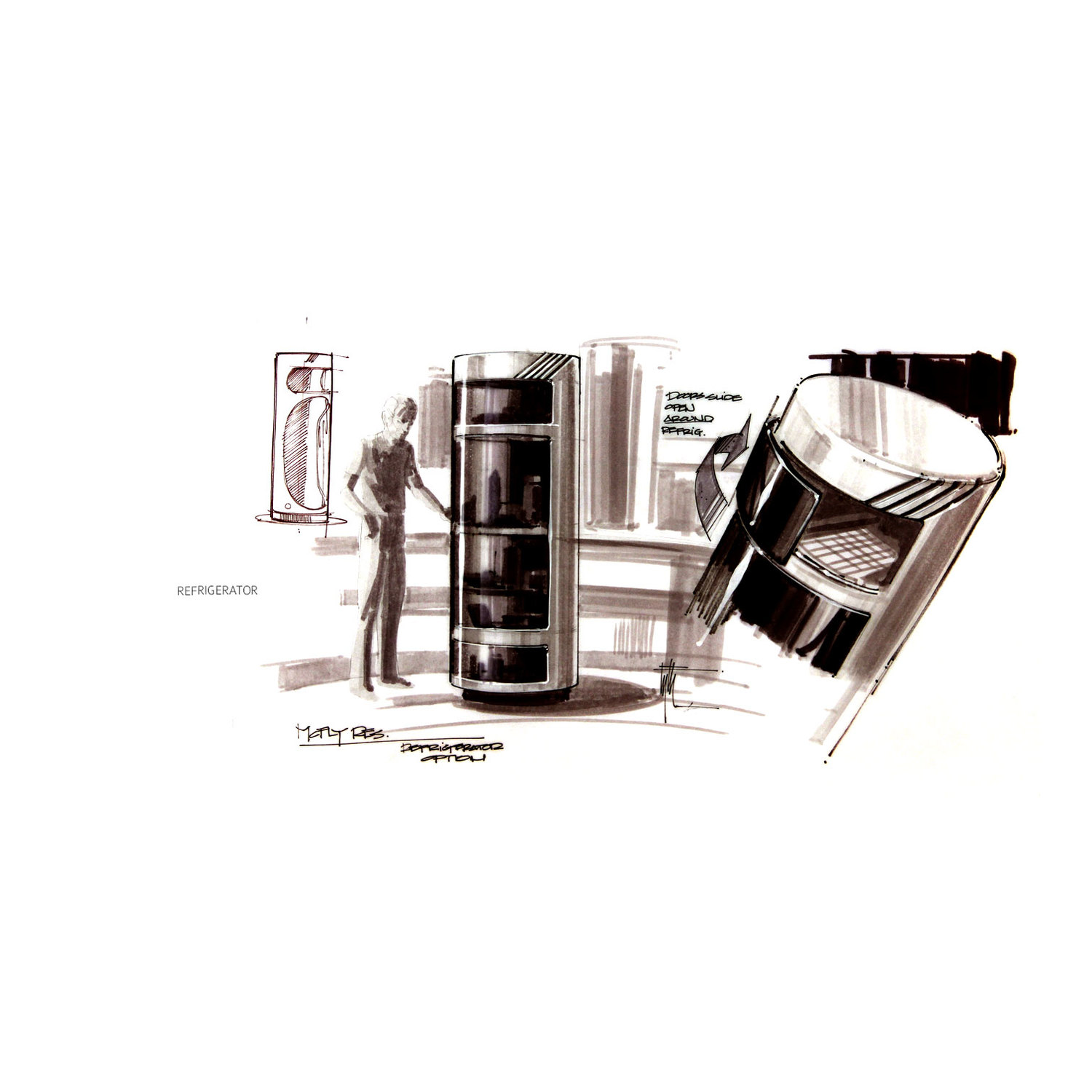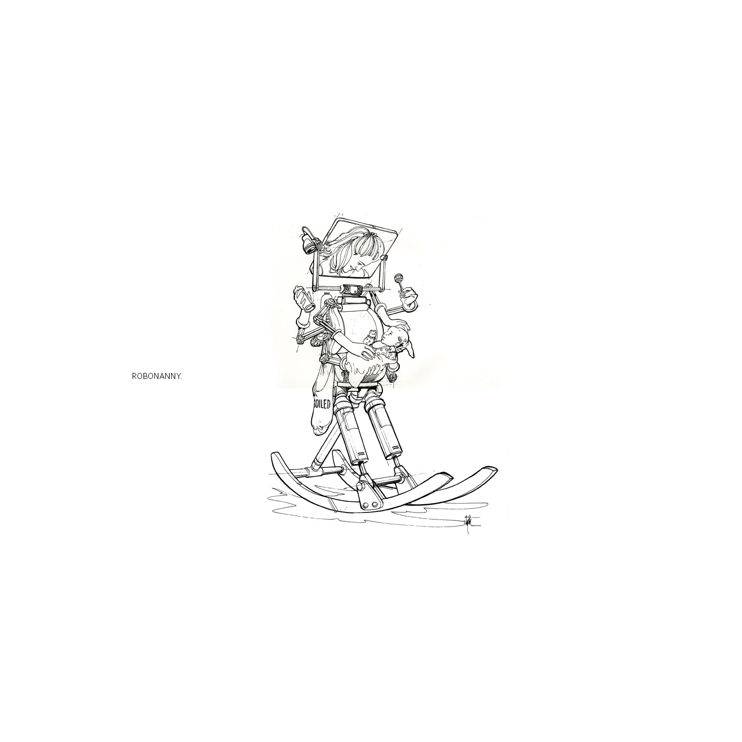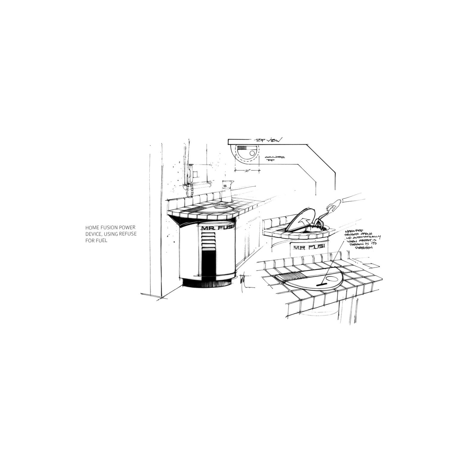 There are some super cool ideas in there. I love the idea of the watch that keeps folding out (though we arguably have sometime kind of similar with the iWatch). The Robonanny is funny and the other robots to help around the house, all very cool. Eyth also did some more detail drawings of the contraption old George McFly uses on his back.