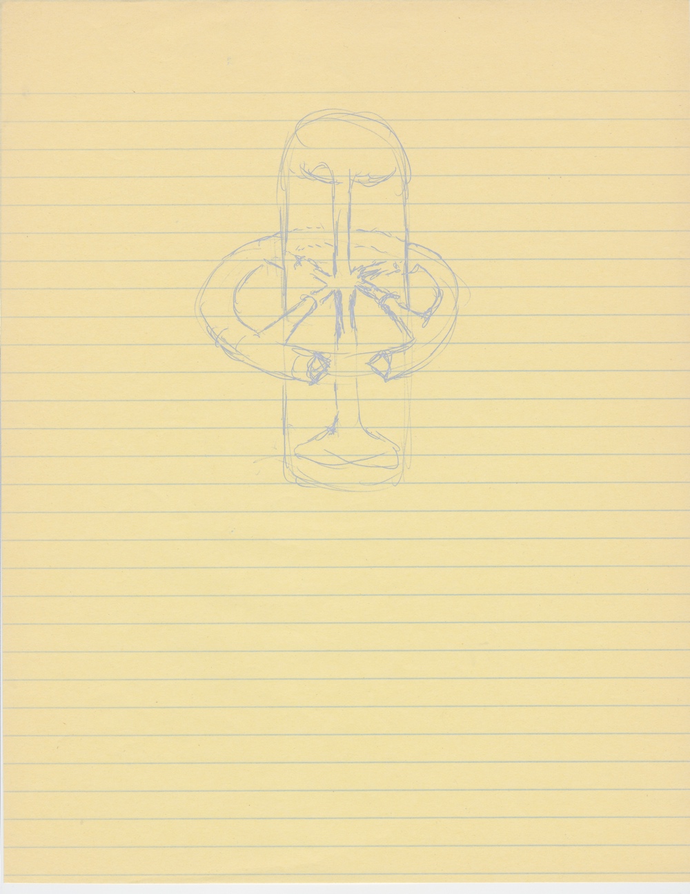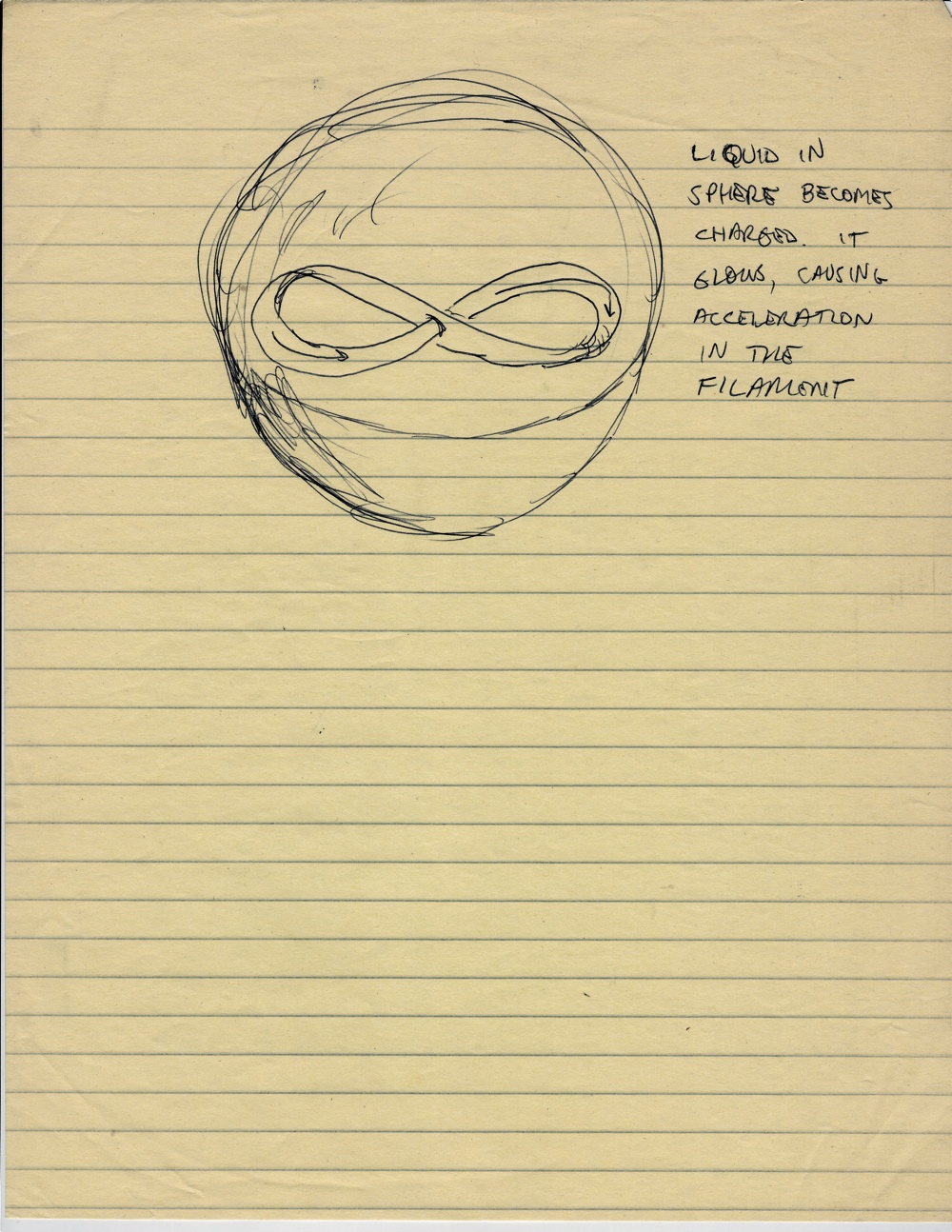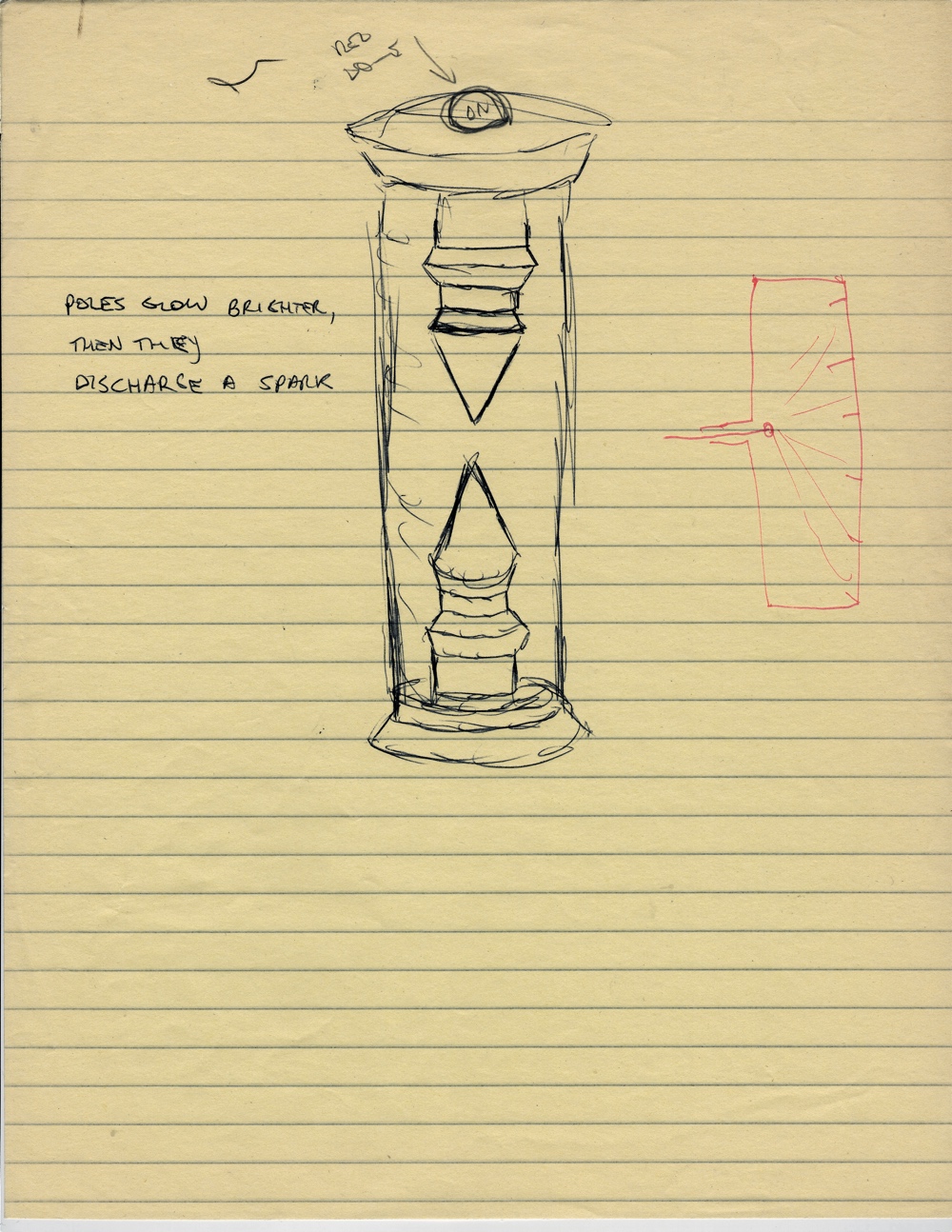 Above you can see three of four original designs sketched by Back to the Future screenwriter Bob Gale for Doc Brown's famous time-travel device. The Flux Capacitor has become one of the most iconic props in movie history, and it started here on a few sheets of yellow lined paper. Klastorin told me that Gale pretty much kept everything, which is why we have some of this great developmental material still today.