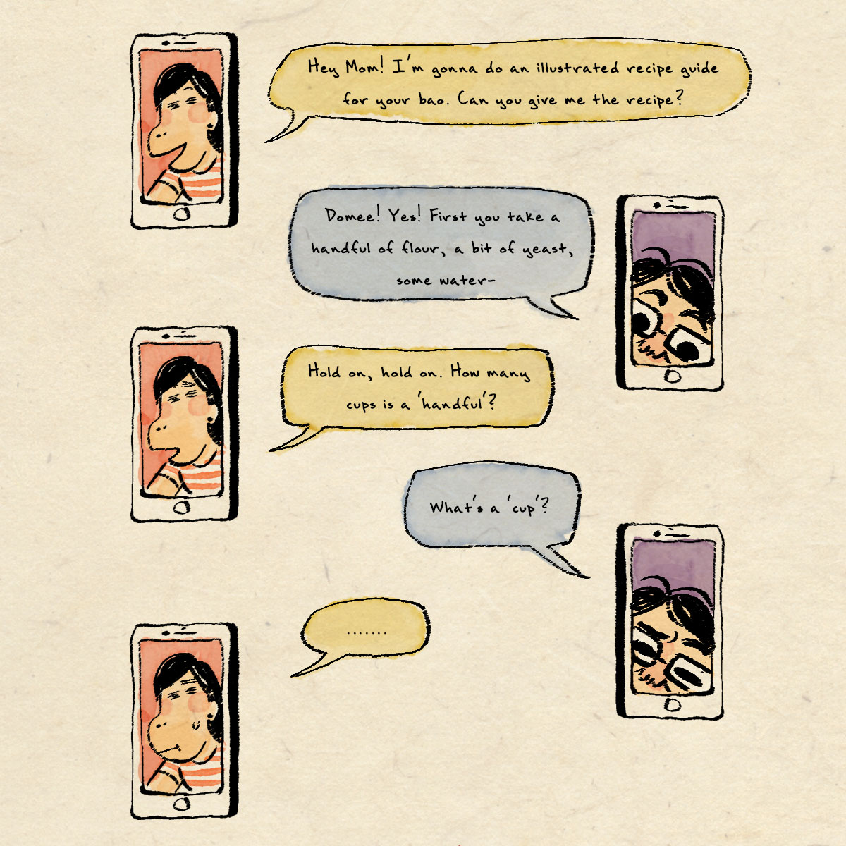 The fun conversation between Shi and her mother about measurements is another all-to0-real touch — I can't count the number of times I've asked my mom or grandmother for exact measurements for family recipes and they shrugged and told me to Google it.